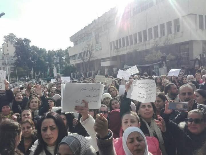 شهدت مدينة اللاذقية اليوم، احتجاجات حاشدة أمام مبنى مديرية التربية، بمشاركة عشرات المعلمين والمعلمات، للتعبير عن رفضهم القاطع حول قرار إنهاء تحديد مركز العمل وإعادتهم إلى مناطقهم الأصلية.
