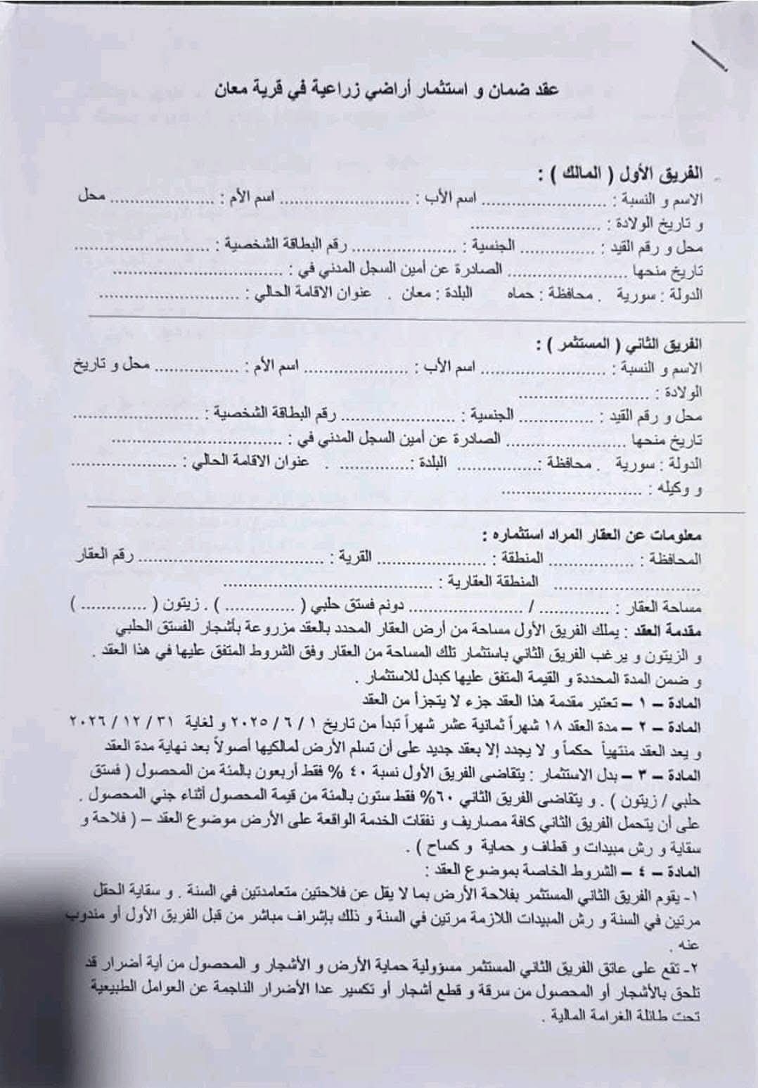 وفي تطور ذي صلة، تم الاطلاع على نموذج من عقود الاستثمار المقدمة، والتي تكشف عن شروط مجحفة بحق أصحاب الأراضي الأصليين، حيث تمنحهم حصة 40% فقط من المحصول، في حين تحصل الشركة المستثمرة على 60% منه.