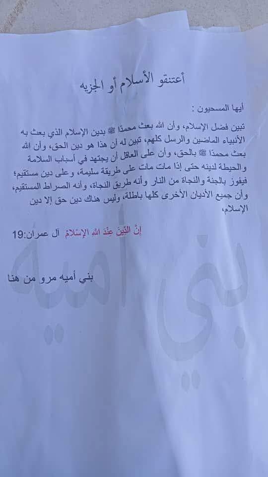 من سيارات الدعوة إلى إلصاق منشورات دعوية على كنائس طرطوس