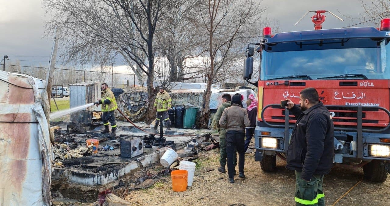 نتيجة احتراق خيمتين..وفاة طفلة سورية في مخيم قب الياس بلنبان
