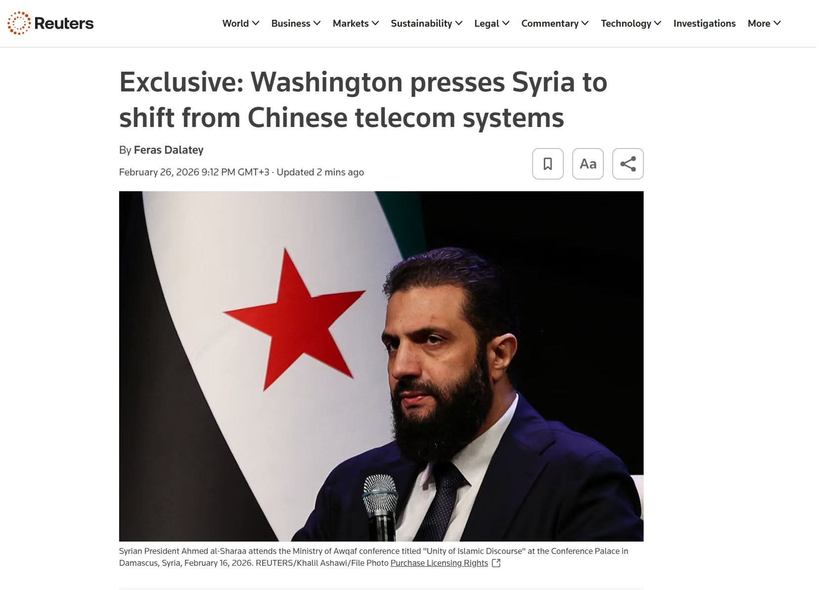 واشنطن تطلق إنذاراً لدمشق: الاعتماد على التكنولوجيا الصينية يهدد التعاون مع أميركا